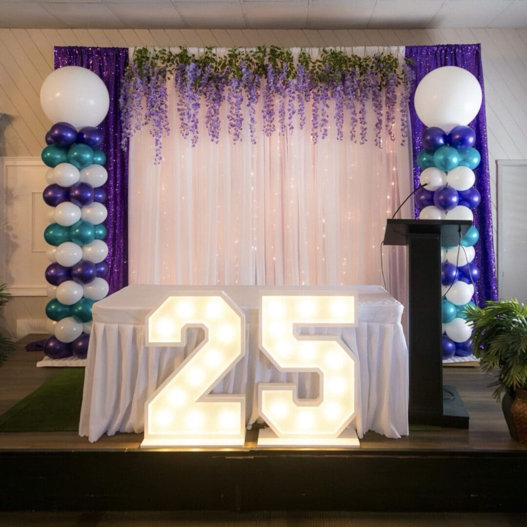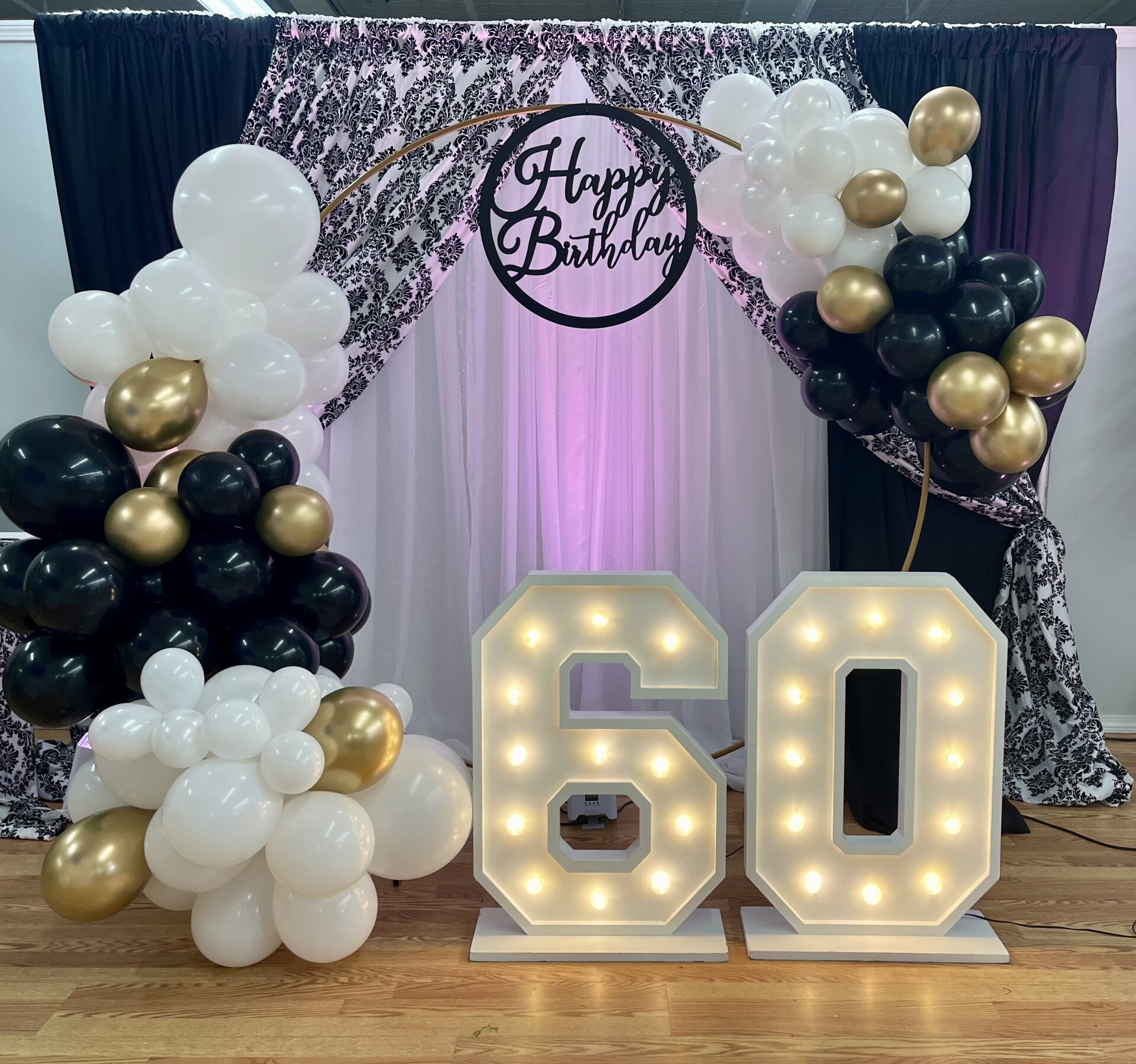 Design your celebration your way! Choose from our wide selection of backdrops, balloons, marquee numbers, and party props to build the perfect décor package for your event. Every item can be customized to match your theme, color scheme, and style, ready for easy pickup and effortless setup.